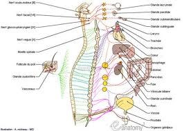 Dans son architecture, il y a d’abord la colonne vertébrale dans sa relation aux organes par le biais des systèmes nerveux autonomes du système nerveux central (ou cérébrospinal) du cerveau, lui-même connecté avec le cœur par les signaux que ce dernier lui adresse en permanence. Cet ensemble est appelé le tronc (Cf. image), "sympathique" quand le système nerveux sert à accélérer, à susciter le désir, et "parasympathique" (ou nerf vague) lorsqu’il sert à freiner, à inhiber les actions mentales trop actives. L’idéal est bien entendu son équilibre. Tous deux dépendent du cervelet, situé dans la partie postérieure du crâne. Ce tronc est relié dans le corps à la tête, le cerveau, par la moelle épinière, siège du système cérébro-spinal.