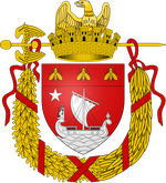 royale évoquant la Jérusalem céleste, le Caducée d'Hermès (les énergies masculine et féminine), les abeilles (le miel - l'or - royal), les palmes du vainqueur, et la caravelle (bateau phénicien)